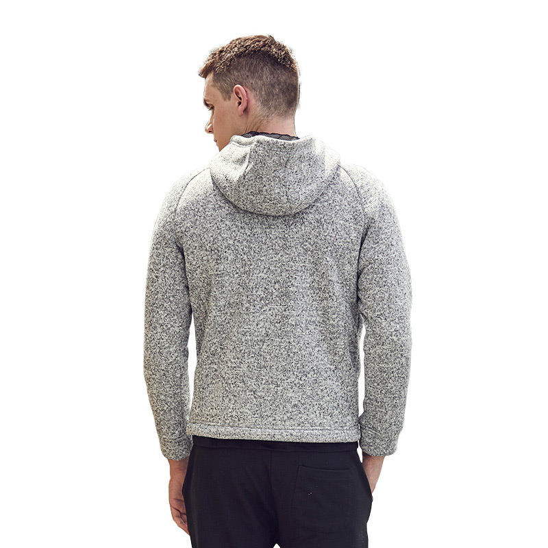 Men’s winter 100% polyester daily warmth fashion design plus size light gray plush lining zipper cardigan hooded knitted jacket.